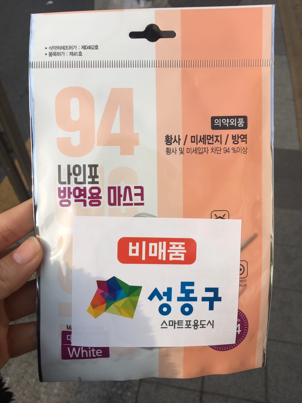다행히 성동구청에서 성수동 주민들께 매일 마스크 한 장식을 무료로 나눠준다는 소식을 들었어요