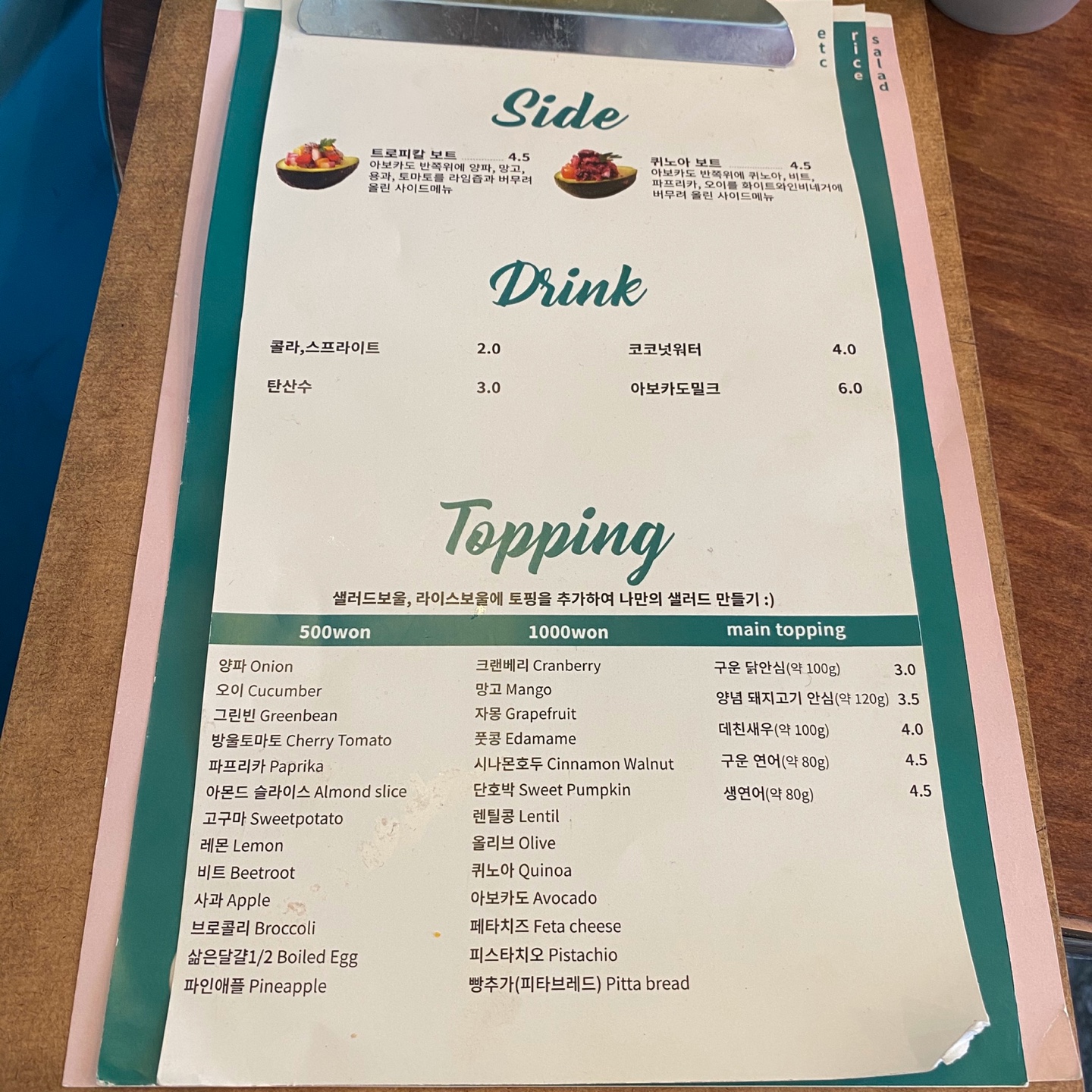 메뉴판도 보기 편하게 사진과 설명이 같이있어서 고르기 어렵지 않았습니다