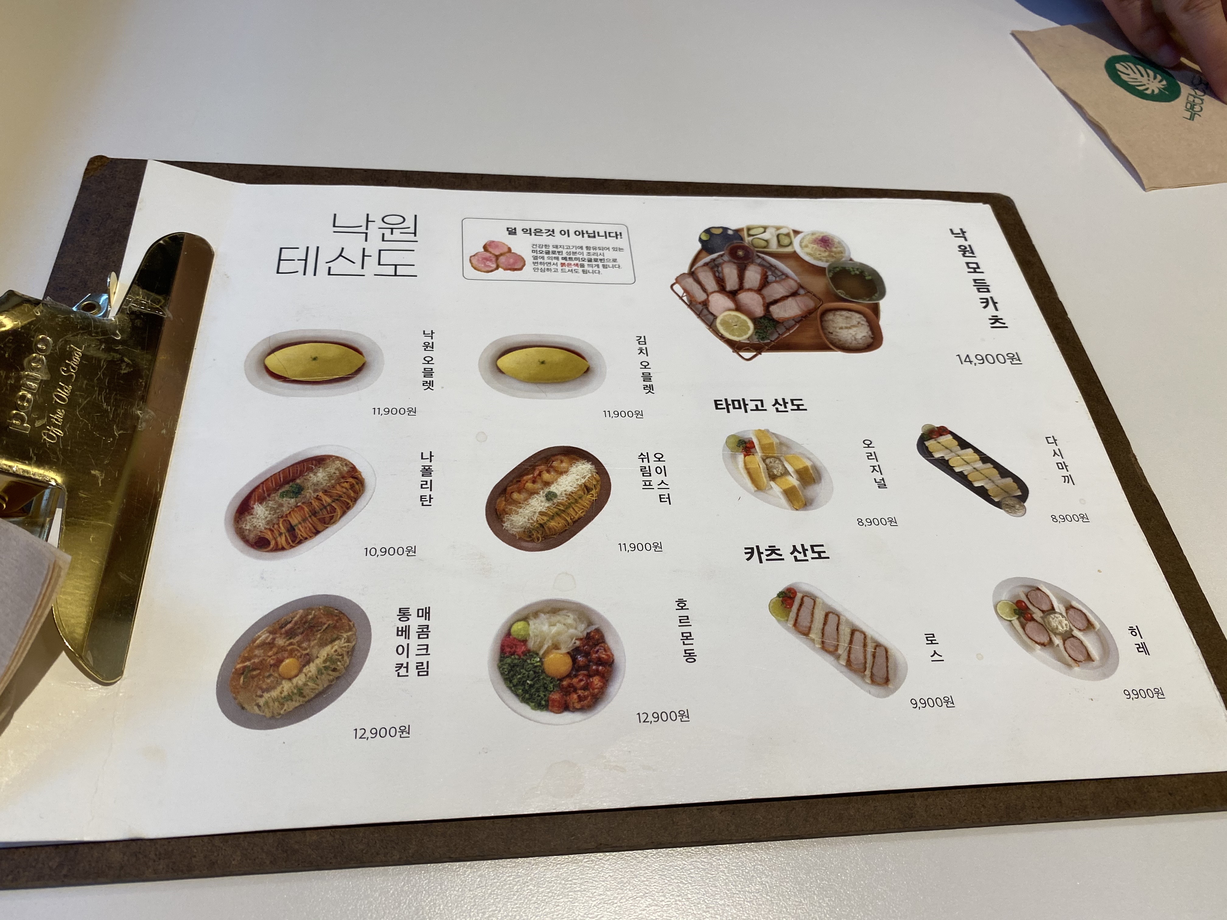 저희는 낙원오믈렛,나폴리탄,호르몬동,타마고산도(오리지널),카츠산도(로스) 주문했어요