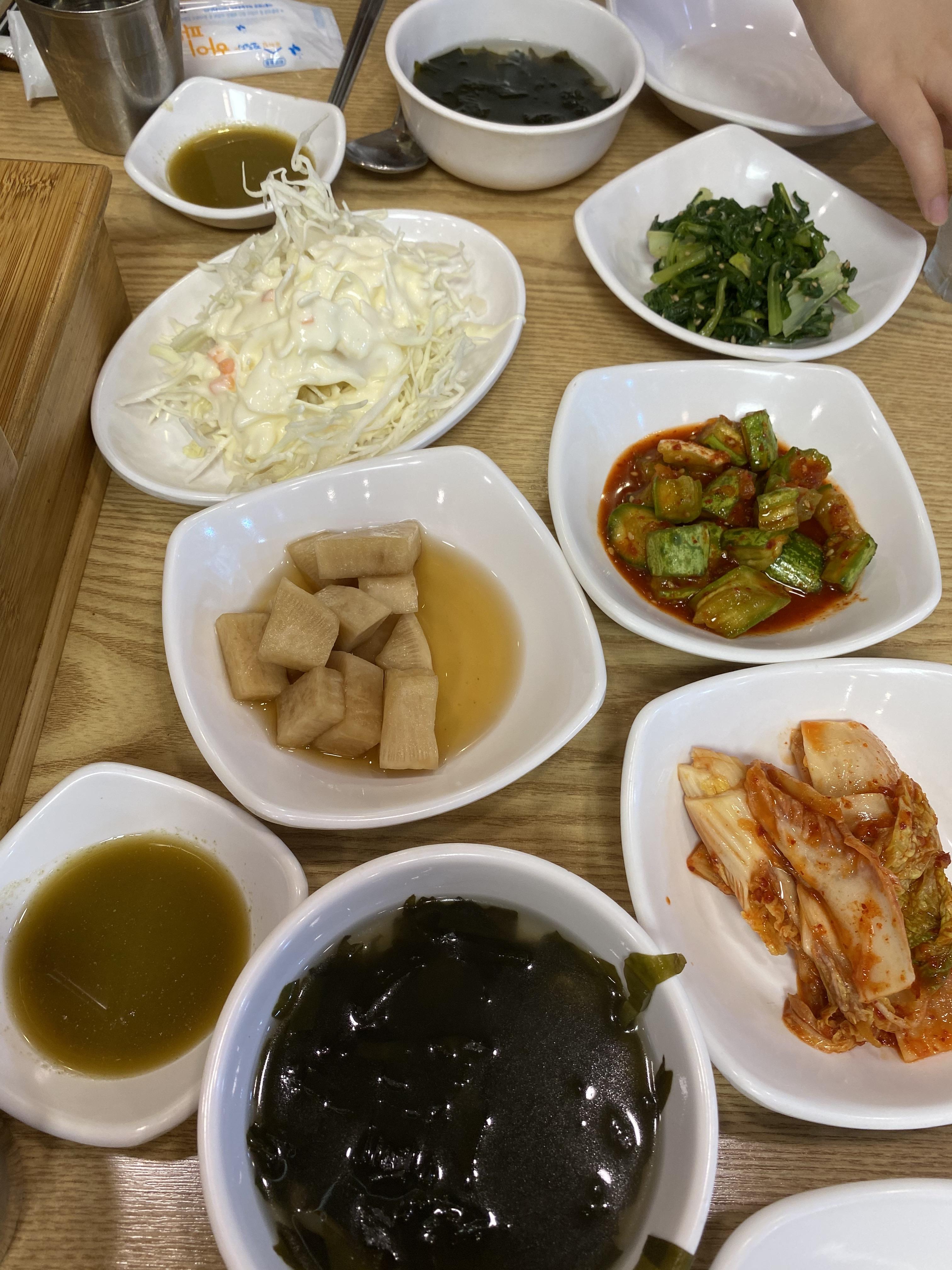 주문을하면 먼저 미역국을주시고 반찬세팅을해주셨어요! 반찬들부터 미역국 다맛있어요 저희지점도 맛있는데