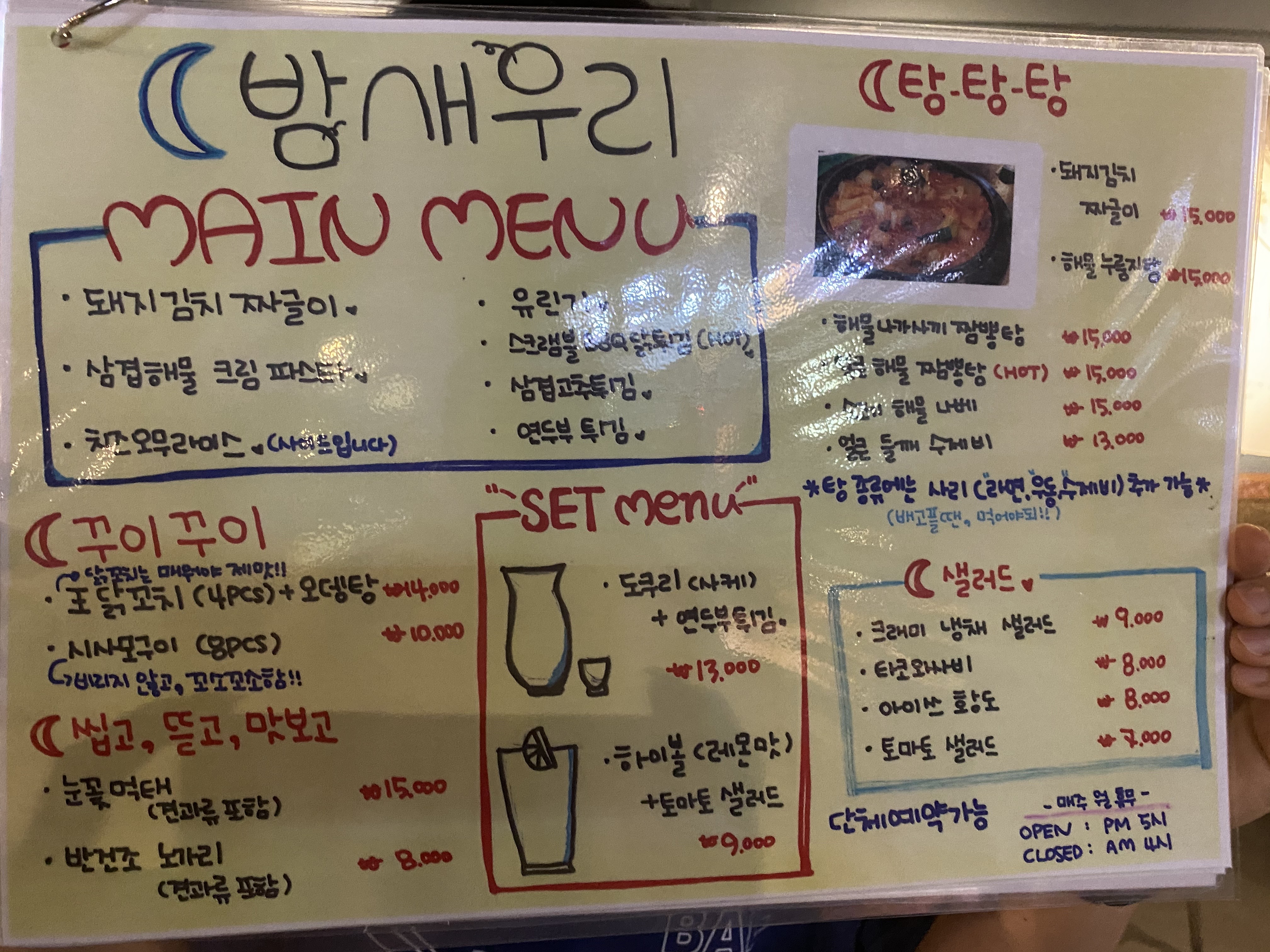 여태먹어본 안주들 총집합이예요!!! 진짜 다맛있습니다 특히 해물크림스파게티랑 국물떡볶이는 필수예요 ㅎㅎ
